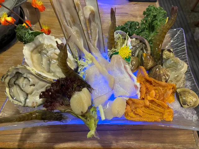 很有層次的豉油碟:基本食物方面雞牛豬羊都有,值得一讚的是牛柏葉清洗乾淨、口感爽脆:基本盤的雪花肥牛賣相吸引,切割厚薄度適中,而且也頗有牛味:分享了社交媒體獲贈送頂級和牛拼盤,賣相很精緻,而且肉質確實比基本的肉類更昇華一個層次。手切封門柳牛味十足而且淥過熟了一點也不會很韌,至於安格斯肥牛片則是很適合邊爐的部位,涮一涮後點醬油非常滿足。加$50便有的海鮮船,可見海鮮種類很多,很少見並非專門食海鮮的火鍋店有如此多款海鮮,盆邊的海蝦及中間的鮑魚送上來的時候還在蠕動,雖然感覺有些殘忍但海鮮確實很新鮮;兩隻蠔都超級肥美,這盆海鮮船(雖然不太有船的形狀