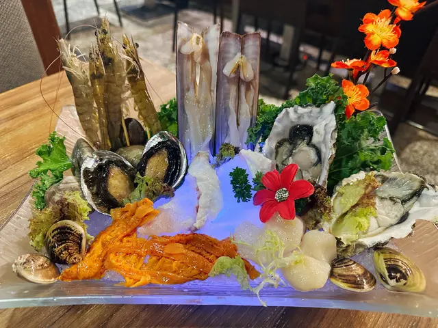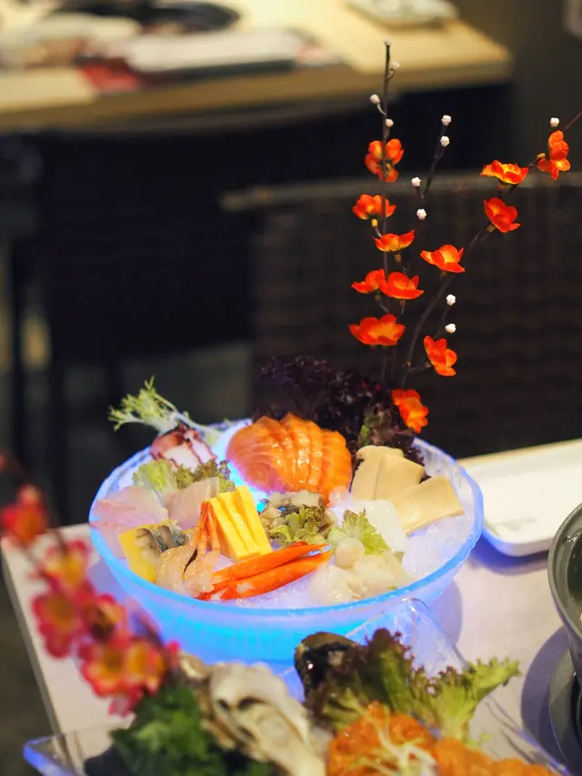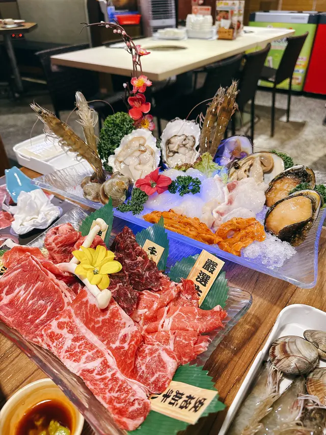 很有層次的豉油碟:基本食物方面雞牛豬羊都有,值得一讚的是牛柏葉清洗乾淨、口感爽脆:基本盤的雪花肥牛賣相吸引,切割厚薄度適中,而且也頗有牛味:分享了社交媒體獲贈送頂級和牛拼盤,賣相很精緻,而且肉質確實比基本的肉類更昇華一個層次。手切封門柳牛味十足而且淥過熟了一點也不會很韌,至於安格斯肥牛片則是很適合邊爐的部位,涮一涮後點醬油非常滿足。加$50便有的海鮮船,可見海鮮種類很多,很少見並非專門食海鮮的火鍋店有如此多款海鮮,盆邊的海蝦及中間的鮑魚送上來的時候還在蠕動,雖然感覺有些殘忍但海鮮確實很新鮮;兩隻蠔都超級肥美,這盆海鮮船(雖然不太有船的形狀