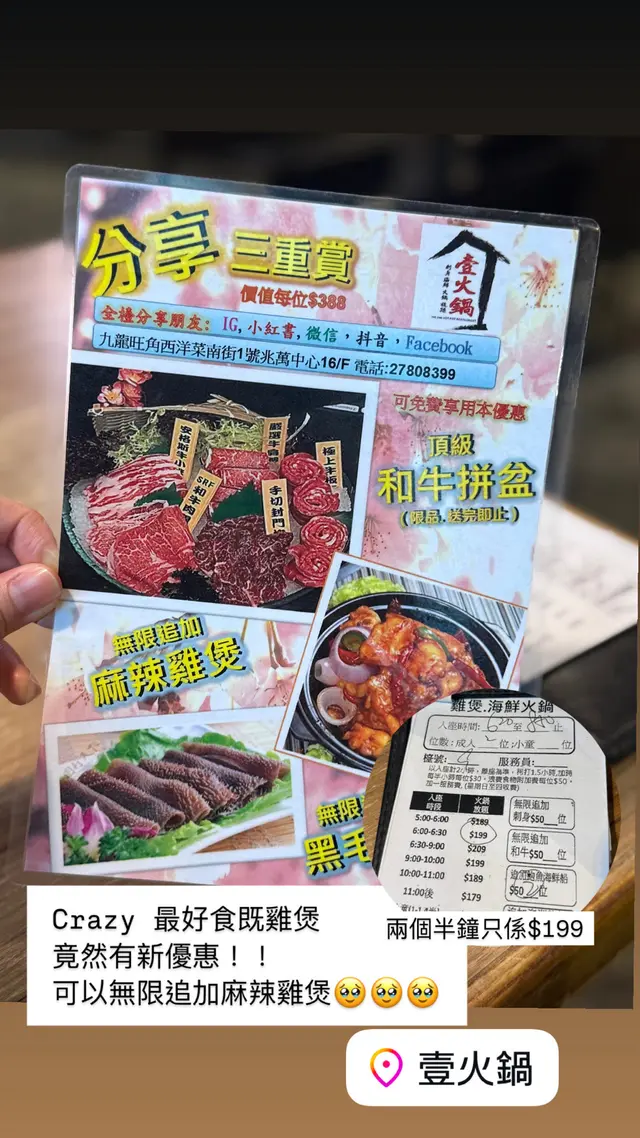 某些人可能會對兆萬中心的食肆避之則吉,不過惡名存在多年,近來聽聞這裏多了不少價格實惠、食物質素不錯的餐廳,這間火鍋也是其中一間不少好評的餐廳,一於到場試試。平日晚餐最繁忙時間都是$209/位,包最基本的多款肉類、多款蔬菜碗、打邊爐丸類,而且場內飲品款式不少(有免費啤酒)、甜品有不同口味的雪糕,絕對夠大快朵頤