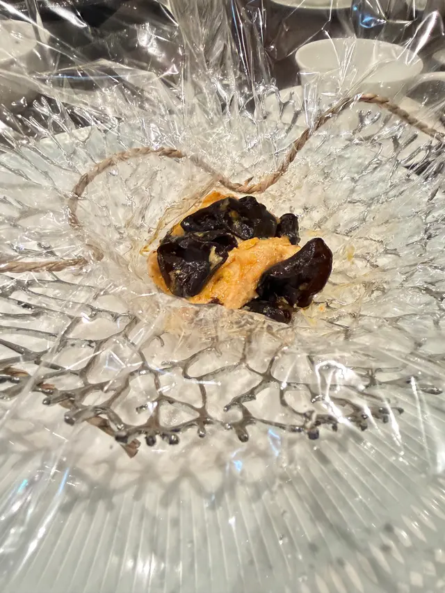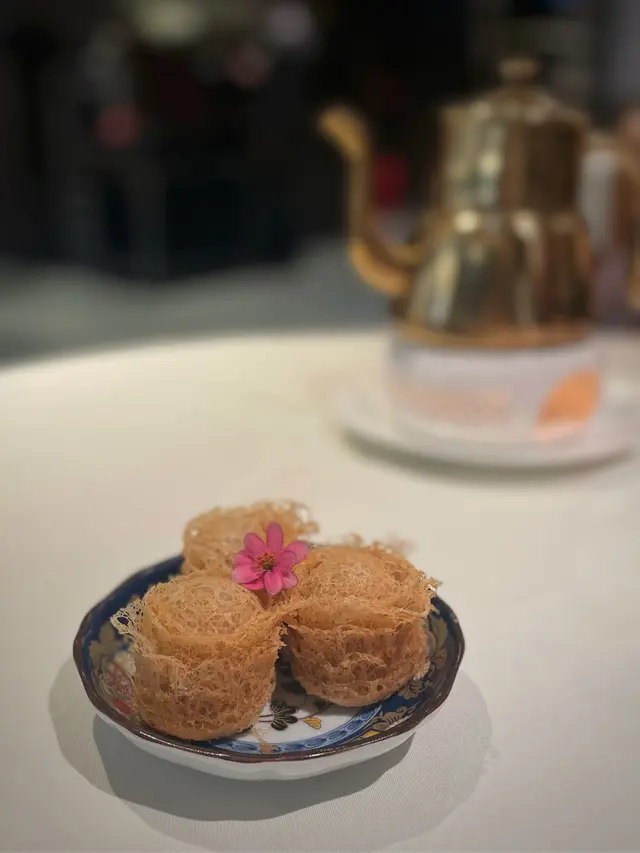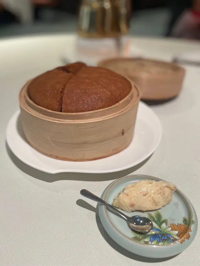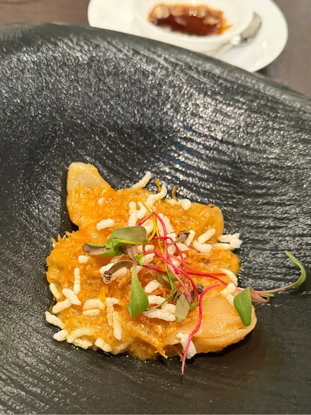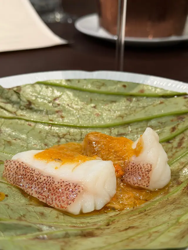 荷葉蒸星班片配蟹粉及脆米