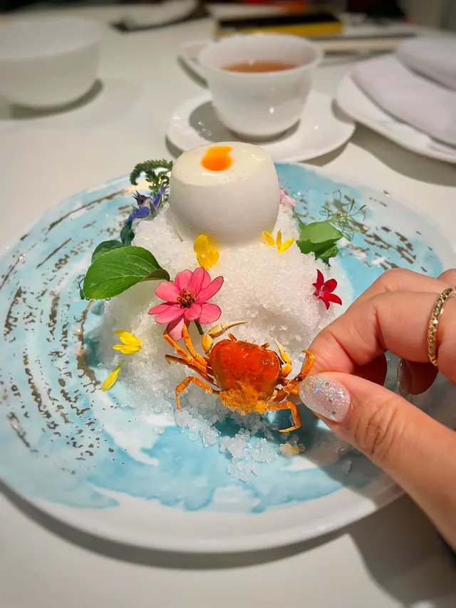 1. 魚子醬蘋果海鮮啫喱配蟹粉蟹肉脆沙律球