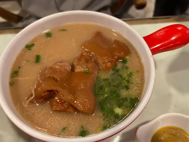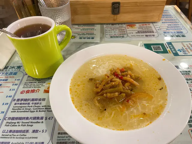 8號風球懸掛,沒去處就去看電影。距離電影開始播放只有20分鐘,就在電影院附近隨便找點吃的充充飢。冰室內顧客不多,坐下來立即點了三款食物:潮州手打魚片頭鮮魚湯米粉:鮮魚湯鮮味不足,三角形的魚片頭有五片,頗彈牙,味道也可以,米粉不是平時吃的類型,較爽口,份量不太多。醬爆南乳豬手麵:湯頭加入了南乳豬手的醬汁,味道不錯,豬手有兩件,煮得夠軟,但味道更香濃一點就更佳,麵煮得太軟,不夠爽口。腐乳通菜:腐乳醬好味,通菜也長得爽口,不錯。本來這冰室環境算是不錯,但進食期間,一隻蒼蠅不停在我們的食物附近亂飛,甚是困擾。另外,為我們點食物的員工似乎不太滿意8號風球要上班,有點煩躁,幸好後來為我們送上食物的員工態度很好。查看更多