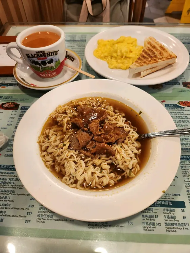 又是星期日,睇早場時間今日睇西片:A Hunting in Venice說是“早場”,其實不早,11:15a.m.開場,有時間慢條斯理吃個早餐再入場。在電影院附近兜了一圈,發現有間“壹號冰室”,店內很多人,就吃這間吧!點了早餐B,包括以下的:#沙嗲牛肉公仔麵:好大碗,沙嗲湯底夠濃又不會過鹹,挺好的!牛肉比較薄身但數量不少;公仔麵比較軟身,我不喜歡吃太軟的公仔麵,扣分項。#牛乳炒滑蛋配牛油多士:滑蛋夠滑,可惜不夠熱,味道打了折扣;多士夠脆,好吃!#熱奶茶:紅茶和淡奶的比例合適,好喝!店内部份冷氣(最裏面的)壞了,也是扣分項。查看更多