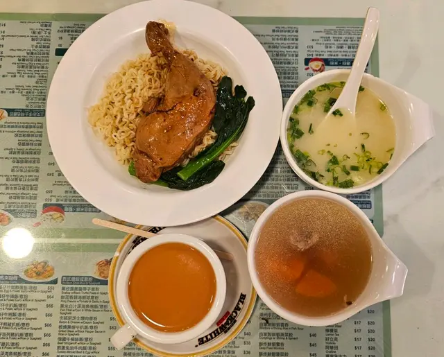 雞脾撈公仔麵,雖無出前一丁揀,但公仔麵口感煮得還OK,不太“淋”,雞脾好入味好軟無雪味,公公婆婆食绝對易入口消化,跟餐例湯青红蘿蔔冰室來講不錯。馬來咖哩,太水了,連咖哩味也冇乜,但蔬菜種類多,有菜心/西蘭花/翠玉瓜/青椒/紫洋蔥/大量白洋蔥/薯仔,蔬菜都煮得適易口感,瓜依然爽脆,薯仔很“淋”,如咖哩改善會很好。熱奶茶,一上枱,香噴噴,飲落茶味足卻欠奶濃,不過整體算OK。查看更多