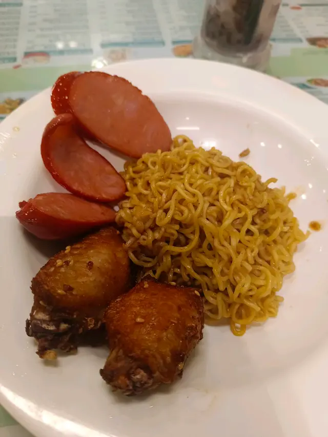 仲有10分鐘就6點,忙完有D肚餓,仲趕到可食個tea!😊😂雞翼拼红腸印尼撈麵有D辣夠惹味!份量也足,炸雞翼好香口,好快食哂!個湯也好飲!椰汁紅豆冰大大杯!餐飲不用加錢真好!椰汁清香,紅豆有咬口!查看更多