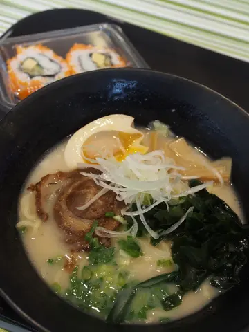 上次講到我們在apm的新food court用餐繼男朋友的那個後,就來介紹一下我的吧其實有轉變是好,畢竟這裡環境美了很多啊在壹麵屋選了迷你豬骨叉燒拉麵 配 壽司價格不算很便宜,這是下午茶餐來的其實這天在商場裡爬爬走也沒看到有什麼想吃的而價格又是差不多,看來下次應該會走遠點說回這拉麵,湯底是很濃濃的鹹味,麵條也糊爛那片乾乾柴柴的义燒,不吃也可隨餐的加洲卷 2件第一次吃溫的壽司,感覺很怪異幸好沒壞掉連那個滑蛋豬扒飯,這個午餐真可惜就這樣 2個套餐 花費了HKD$87