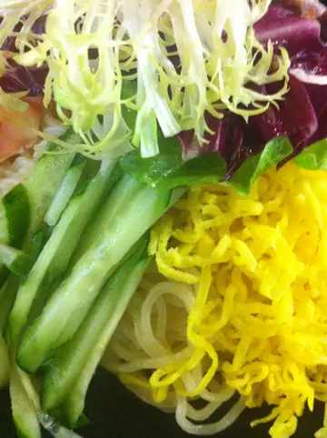 ,他要吃冷麵,選擇只有這家。單看賣相,顏色和擺設真一般,我只吃了少少試味,麵已彈牙,重淋咗少少。看相也能看得出,蕃茄和青瓜己少少乾水