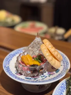 銅鑼灣高質壽喜燒今天跟朋友去銅鑼灣逛逛街,晚上肚餓了,附近駱克駅有很多餐廳。看到招牌朋友想吃A4和牛,看到有壽喜燒套餐非常吸引🤩壽喜燒版本的廚師發辦餐廳座位不多,平日晚上人多,建議提早訂位。裝修具傳統日本特色,柔和的燈光,純音樂,有專人在你面前製作食物,提供熱茶、紙巾,這次吃Deluxe Wagyu Set $980 +1/位,食物非常豐富Appetizers前菜三點:鮑魚、三文魚籽豆腐、水雲醋Sashimi 3 Kinds海之辛刺身三點刺身三点:鯛魚、拖羅、帶子Sea Urchin Wagyu Tartare海膽和牛他他配黑松露和最中餅,可以攪拌後一起吃Seasonal Japanese Steamed Egg李節茶碗蒸:嫩滑的穴子Beef Tongue厚燒牛舌芯配微辣蘿蔔蓉,加入日本淡鹽和酸汁,撈埋一齊食Salt-Grilled U.S. Dry Aged Rib Eye鹽煎美國熟成肉眼配蘭王蛋黃,七成熟肉質厚實Japanese A4 Wagyu Beef Sirloin日本A4和牛西冷(大分,宮崎,神戶,佐賀,北海道)和牛超肥美,肉質嫩滑,配合蛋漿和珍珠米,最後和牛炒烏冬,香口惹味Assorted Seasonal Vegetable季節野菜盛盒金菇、蘑菇、豆腐、娃娃菜、蘿蔔、南瓜、芋絲、洋蔥Overflow Salmon Roe Kettle Rice滿溢筋子釜飯溢 筋子釜飯松葉蟹、黑松露、枝豆一起製作的釜飯,有一大碗筋子可以免費追加Set Meal Served with Soup & Dessert套餐附送清湯及甜品汁物、 一 付最後有慕茸菇清湯暖胃,甜品粟子雪糕配清甜蜜瓜服務質素:8/10環境舒適度:8/10ᶘ ᵒᴥᵒᶅ個人口味評分:8/10 …查看更多