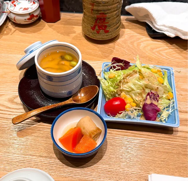 午餐套餐包括前菜、蒸蛋、沙律、麵豉湯、甜品和飲品