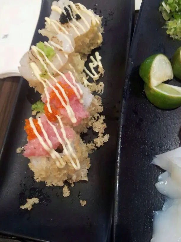初嚐壽司派 歡樂女孩等級42014-11-29327 瀏覽 關注 由於夜晚去食的關係所以等下位都是要的好開心啊 因為有得住bar [木台]但認為bar[木台]的選擇狠少:(而且感覺有點不太新鮮的感覺所以今次全部都係即叫即整的配搭三文魚 的壽司款三文魚勁厚切 大大舊其實我覺得無論三文魚 配什麼配搭我都okay的 哈哈唔知咩咩魚壽司嘩!!中哂伏啊唔該 :(真係難食到呢 唔想再食啊!!感覺好奇怪啊~~~玻璃蝦壽司普普通通啦 咪就係玻璃蝦+壽司囉帶子壽司真係要食哩個啊!!勁大舊啖啖肉勁肥美啊哈哈唔記得叫咩名的壽司只記得出面個層係脆脆地的食落去都幾新鮮的感覺燒牛肉壽司燒左少少的牛肉配上蔥粒好好味 這個配搭都不錯食左之後 還有少少蔥粒的味道留在口中但我希望留左口中的味道是牛肉啊…查看更多+ 2以上食評乃用戶個人意見 , 並不代表OpenRice之觀點。讚好分享初嚐壽司派 壽司派 https://s.openrice.com/QrbT02S8a00檢舉 張貼 評分3味道3環境3服務4衛生4抵食推介美食三文魚壽司帶子壽司燒牛肉壽司用餐日期2014-10-31等候時間20 分鐘 (堂食)人均消費$100 (晚餐)