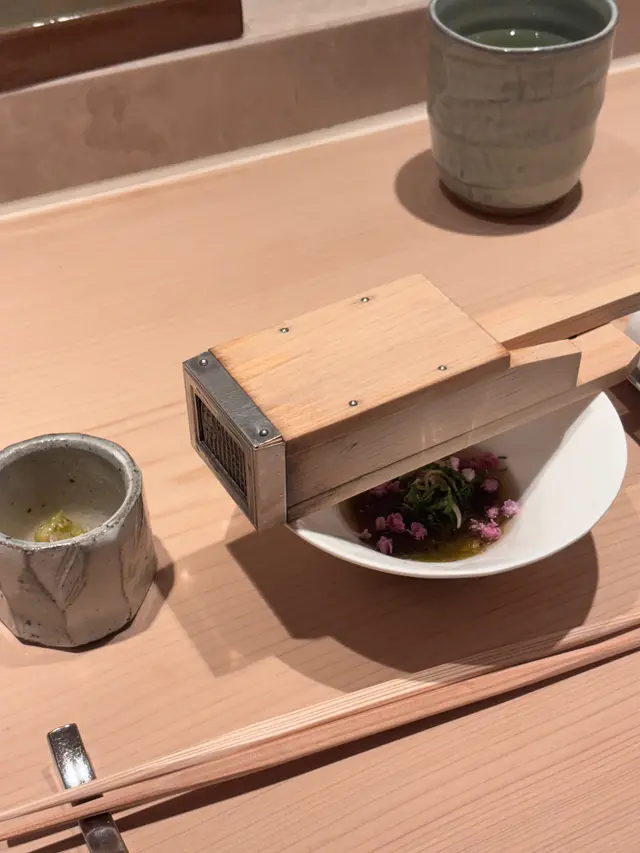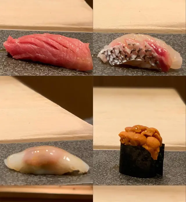📍位置在尖沙咀金马伦道8号The Otto酒店1楼,位置还算好找。店内是日式极简原木风,一走进去,安静又舒适,让人瞬间放松下来,很有吃omakase的氛围。套餐里前菜的「小肌鱼配蛋黄紫菜」一上桌就惊艳到我了,小肌鱼色泽鲜亮,下面垫着的是混合了蛋黄酱的山药,代替了传统寿司饭,搭配上芥末籽,一口下去,酸酸甜甜,超级开胃 !「日本圣子贝」也很不错,刺身口感筋道,特制青瓜酱增加了浓稠感,又添了一丝清爽。寿司环节更是精彩,每一贯都能感受到师傅的用心。「带子」肉厚嫩滑,入口即化;「深海池鱼」厚切吃起来超满足,胶状口感很特别;「马粪海胆」据说是当天空运来的,师傅给挖了满满一大勺,鲜甜可口,幸福感直接拉满!最后的甜品「柠檬奶冻慕丝」为这顿饭完美收尾,上层丝滑的柠檬慕斯,下层弹嫩奶冻,再挤上柠檬汁,酸酸甜甜的,超解腻 。全程师傅都很热情,会细心介绍每一道食材的来源和特色,边吃边涨知识。如果来香港想吃正宗又有创意的日料,寿司芳真的强烈推荐!…查看更多