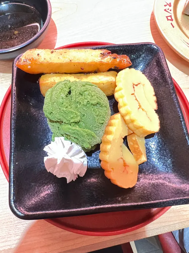 好耐無食壽司,最近見到壽司郎推出一系列新壽司及甜品,忍唔住即刻約朋友去食。炙燒紅酒鵝肝配蒜味醬 鵝肝經炙燒後油脂溶化、入口即化,帶住微微酒香,搭配蒜味醬更加提味,唔會太膩香蔥三味(赤蝦、三文魚、魷魚) 三款壽司以香蔥鋪面,帶出鮮味之餘又多咗少少爽口感。赤蝦爽甜彈牙、三文魚油脂豐富、魷魚則煙韌滑溜吞拿魚三味(黑鮪中吞、藍鰭赤身、藍鰭魚蓉) 黑鮪中吞很香油脂,藍鰭赤身味道濃郁、魚味突出,而吞拿魚蓉滑口度高炸蝦排配他他醬 炸蝦金黃酥脆,大件厚肉,咬落爽口,配埋酸酸甜甜既他他醬,好開胃伊達卷和風甜點拼盤伊達卷質地綿密,蛋香濃郁,唔會太甜,抹茶雪糕清香微苦,配合忌廉食落更有層次,而焦糖蕃薯條外脆內軟,糖漿焦香帶甜但唔膩口港式奶茶味卡達拉娜 最驚喜係呢個港式fusion甜品,奶茶味香濃,帶有茶澀與奶香,平衡得剛好