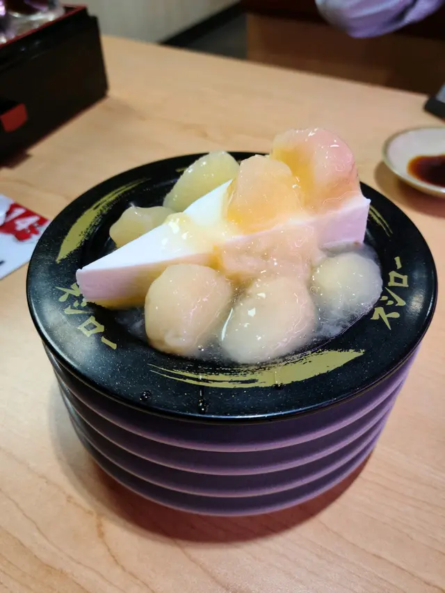 大約7:10攞飛都仲要等100個位,入得座嚟都8:30。除咗固定Menu上面嘅餐點,本身特登嚟試新出嘅甜品——焦糖蛋糕,但係唔知係咪因為最近有人話佢冇指出有敏嘅成份,所以冇得食🥲。咁就唯有試吓新出嘅鵝肝軍艦、紅酒鵝肝配蘋果壽司同埋番薯天婦羅。鵝肝軍艦 $17一疊兩件,就係紅酒鵝肝壽司切頭切尾整成嘅軍艦,份量都幾多,味道當然唔差,性價比都幾高!紅酒鵝肝配蘋果壽司 $27蘋果幾清潔配埋紅酒鵝肝本身嗰種甜同埋鵝油味,好fresh,係會令人想encore嘅~番薯天婦羅$18一碟有四件番薯,即叫即炸,做到皮薄如果番薯係香甜軟身嘅!…查看更多