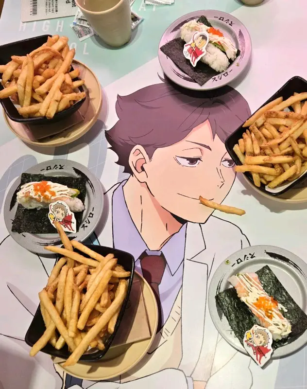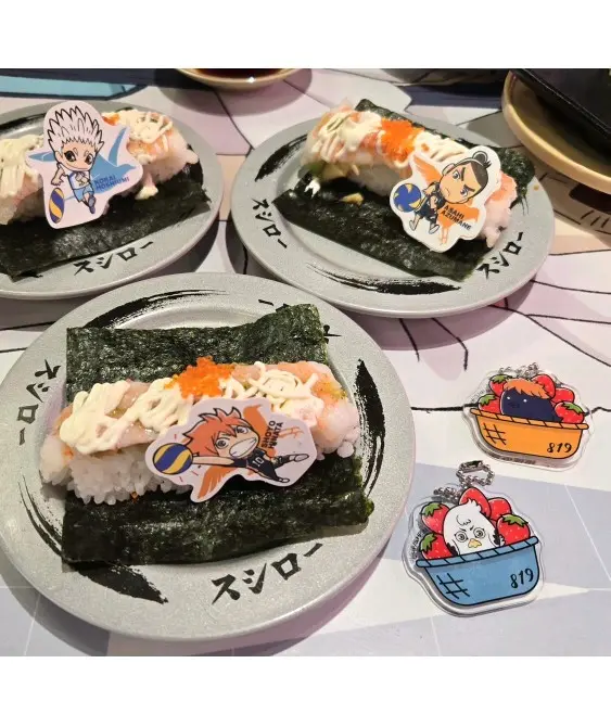 Deliberately visited this Sushiro in Causeway Bay for their time-limited Haikyuu-themed store in May with my friend and my sis..We ordered the following Haikyuu collab specials:-Shrimp & Avocado WrapIt was a wrap that combined shrimp, avocado, mayonnaise and crab roe. Topped with crab roe and mayonnaise, the shrimp was satisfying and the avocado underneath added a creamy texture to the wrap. The whole combination was refreshing. This item came with a randomly selected mini character pick, with 20 different types available. -Shake Crispy French Fries The fries were similar to McDonald's' shake shake fries, and we could mix them with garlic cream flavour seasoning powder. The fries were extremely crispy and hot, and the garlic cream flavour was rich and savoury. This item came with a randomly selected transparent/double-sided collection card. -Marble Straberry White Chocolate Mousse CakeThe cake tasted better than I expected. The strawberry sauce was not too sour, and the white chocolate was not overly sweet. The mousse had an aromatic scent that complemented the sponge cake at the bottom. This item came with a randomly selected acrylic keychain, with 16 different types available. .The resto was adorned with various Haikyuu characters, and we were lucky enough to sit at a table with Oikawa's face on it🤣. I felt super shiawase to take pics with different Haikyuu characters. Hope there will be more anime collab for Sushiro in the future🥹.…查看更多