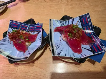 🔥【必食No.1】Ryota特製吞拿魚×生海膽海苔天婦羅 $29米芝蓮餐廳招牌菜變身迴轉壽司‼️生海膽甜度爆燈💥裹上酥脆海苔天婦羅衣,咬落"咔嚓"聲超治癒特調醬油吊出吞拿魚油脂香建議用手接住掉落的碎屑——每一粒都捨不得浪費!🔥【必食No.2】Ryota特製炙燒中吞拿魚腩配蘋果芥末醬 $22米芝蓮秘製醬料❗️ 中拖羅油脂如雪花❄️,炙燒後逼出焦香魚油靈魂蘋果芥末醬神來一筆——🍏酸甜果香中和膩感,尾韻帶山葵嗆辣感彷彿在舌尖玩「冰火五重天」過山車🎢▫️───────────────📌 真實食感:以百元價位吃到Fine dining精髓超驚艷!雖然醋飯握功不及高級店,但創意與食材配搭值回票價適合想摘星又怕錢包破洞的吃貨們✨