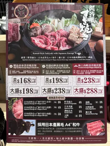 餐廳主打關西風壽喜燒,師傅會喺你面前用牛脂起鑊,先將和牛煎香,再加醬汁同其他配料,成個過程都係一場視覺同味覺嘅享受!今次食咗啲咩好西?