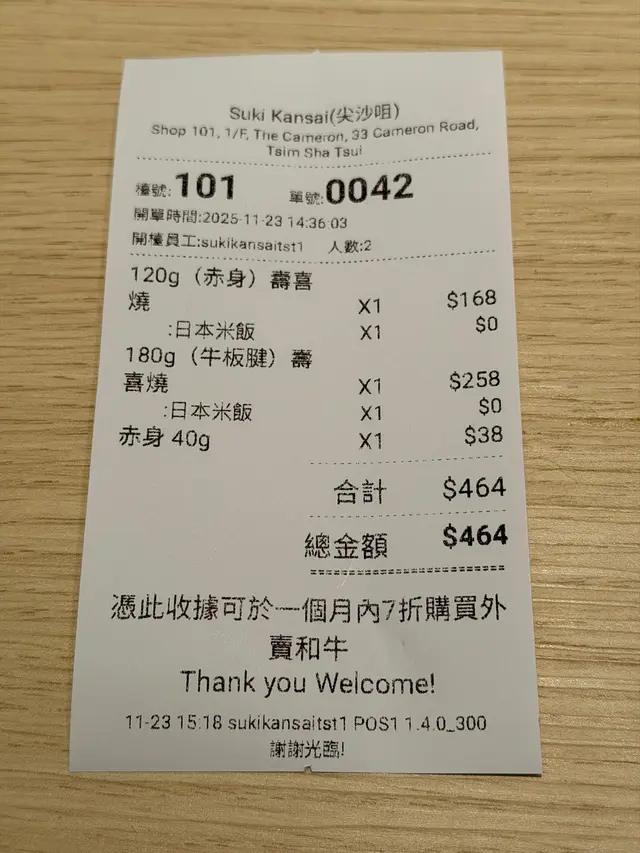壽喜・關西 (尖沙咀) 網址: https://s.openrice.com/QrbS0uPKD00 地址: 香港尖沙咀金馬倫道33號The Cameron1樓101號舖 電話: +852 90732923