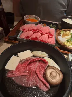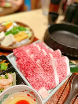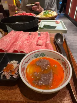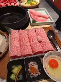 餐廳主打關西風壽喜燒,師傅會喺你面前用牛脂起鑊,先將和牛煎香,再加醬汁同其他配料,成個過程都係一場視覺同味覺嘅享受!今次食咗啲咩好西?