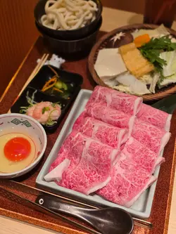 配日本米飯:食壽喜燒點少得一碗靚飯?佢哋嘅日本米飯粒粒晶瑩飽滿,索晒啲牛肉汁同壽喜燒汁,簡直係人間極品!配讚岐烏冬:食完肉,梗係要淥埋烏冬啦!煙韌彈牙,掛汁力一流,將壽喜燒嘅精華完全吸收晒,食到最後一啖都係享受!