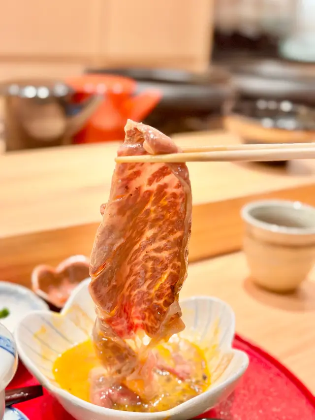 喺香港搵壽喜燒專門店其實選擇唔算多要搵由日籍主廚主理嘅壽喜燒專門店就更加少選擇而尖沙咀棉登徑就有間壽喜燒料理專門店係由來自日本福岡縣糸島資深料理長久家弘一主理以正宗手法為客人席前現煮和牛壽喜燒呢間一到晚市就坐滿人,人氣爆燈!餐廳供應「京都姬牛」、「香川橄欖牛」等和牛餐廳不時更換和牛品種唯獨「京都姬牛」基本上係長駐喺菜單晚市提供2款菜單,價錢分別係 $680 &$1080餐廳係日式竹林庭園風格,雅緻和式裝修餐廳設有吧枱及卡位,四人檯卡位就方便傾計我就鐘意坐吧枱位可席前觀賞現煮過程𑁍 Sukiyaki Set Gaku すき焼きセット 楽 $680 𑁍$680個餐有6道菜,確實划算,包括前菜2品、蒸物、和牛壽喜燒、日本野菜、雞蛋蓋飯及甜品,份量超多,真心飽𓇬 前菜熒光魷魚正值當造,彈牙爆汁鮮味濃另一前菜係櫻花蝦天婦羅,香口炸得乾爽蘿蔔漬配三文魚籽酸甜爽脆𓇬 蒸物櫻葉包裹日本鯛魚及櫻花糯米佐以濃稠汁醬及些少山葵廚師建議攪拌均勻後食用魚肉鮮美滑嫩,糯米夾雜櫻葉香氣𓇬 和牛壽喜燒套餐可以食到兩片唔同產地嘅和牛當日食嘅兩款和牛係「鹿兒島野崎牛」及「京都姬牛」兩款都係雌性黑毛和牛,相對脂肪均勻而且肉質更細緻柔軟🥩鹿兒島野崎牛油花豐富,油脂呈大理石紋般均勻分佈柔軟得令人驚艷,鬆化程度近乎入口即溶但又唔會話食到成口油好膩咁🥩京都姬牛反而肉味較濃,軟稔得嚟較有咬口油脂感較少,與鹿兒島野崎牛嘅風味完全唔同另設4款調味料,有黑松露醬、沖繩辣椒絲、柚子及山葵主廚建議將每片牛分開一半先試原味,另外嗰半片再落調味料但我覺得唔需要任何調味已經夠好食🥚壽喜燒配有兩款生雞蛋,都係兵庫縣產一款係生蛋,另一款係雲朵蛋白泡沫+鮮蛋黃蘸上細膩雲朵蛋汁口感更滑溜,帶出和牛嘅甘甜味道🍚白飯係用北海道糯米及北海道夢美人米用昆布高湯煮過,特別香甜好食可按個人喜好加入日高昆布漬與飯同食𓇬 日本野菜日本直送野菜均用獨門醬汁煮來自靜岡縣嘅Amela蕃茄,甜度高且多汁粟米麵筋、京都燒豆腐、山形冬菇、京都菠菜等都煮到入晒味𓇬 雞蛋蓋飯食到呢道菜都差唔多9成飽你可以揀飯嘅份量,要求少飯雞蛋選用兵庫縣產「日本一こだわり卵」滑蛋索盡鍋內壽喜燒醬汁加上蔥粒及雲朵蛋白,香到不得了昆布高湯煮成嘅飯粒粒分明就算幾飽都絕對唔可以走飯啊𓇬 甜品靜岡蜜瓜大福,蜜瓜熟度啱啱好,又香又甜蕃薯經檸檬慢煮變得軟綿散發清香,微酸與香甜番薯出奇地夾琥珀糖口感特別,似包裹咗一層冰糖嘅啫喱糖最後飲啖茶,瞬間解膩…查看更多
