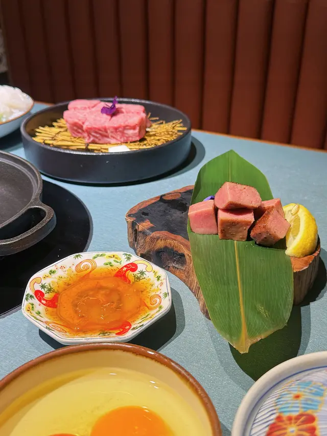 由網店開到實體舖肉屋🥩大家應該唔陌生啦🙊最近發現佢地竟然出左午餐定食😳咁緊係要去試試佢啦😋♡檸檬の牛舌 $99/150g呢排咁hit檸檬牛舌👅見到竟然肉屋都出左 緊係要試試佢🤩99蚊定食黎講都算抵食🤤分別有150g同200g份量選擇 我地就揀左150g份量既☺️大概有10粒到 不過冇想像中咁粉嫩🥹食落都需要啲牙力 唔夠爽口彈牙🥲另外配有檸檬汁同柚子醬比你調調味 但個人覺得滴少少檸檬汁🍋調起牛既鮮味已經好夠😚balance返牛舌濃郁既風味😋佢個柚子醬似係沖柚子茶嗰隻濃縮汁 所以偏甜會蓋過左牛舌既味道🙈另外仲配左柚子蘿蔔 小清新既感覺🌼原來係自家製😳食落去係好清爽既柚香😋唔夠喉仲可以買返去食添🤭♡雪霧忌廉慢煮牛扒飯配蘭王蛋 $148/150g本身其實係為左個檸檬牛舌而黎🙊反而呢個慢煮牛扒好有驚喜😳賣相唔錯 肉質好夠粉嫩🤤上面仲有蘭王蛋 紫洋蔥 炸蒜片 同埋雪霧忌廉🥰佢地係用左牛板腱🐮經過低溫24小時 完全保留左肉質既鮮嫩同肉汁😋口感好嫩口 一啲都唔會韌🥹仲要肉味都好濃 出色好多🫣加上冇乜油脂 所以減肥都食得😍配埋紫洋蔥 炸蒜片 同埋雪霧忌廉一齊食好有層次感😳個cream唔會好膩😌📍壽喜燒·肉屋 (尖沙咀)尖沙咀海防道38-40號中達大廈3樓…查看更多
