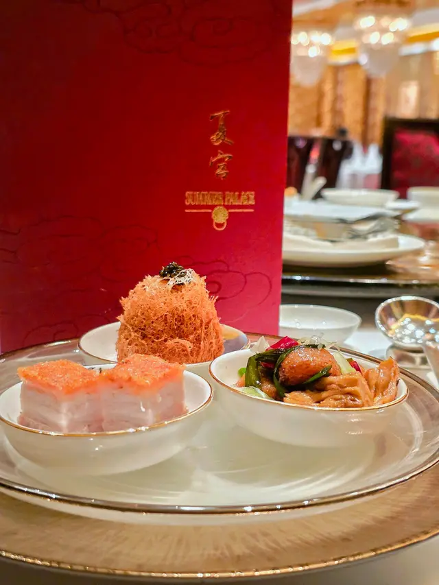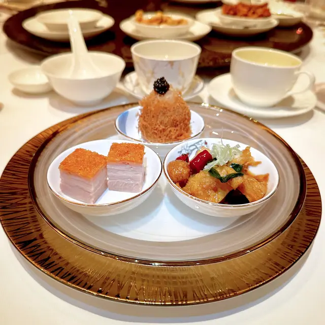 放假日老婆大人又同我去食好嘢!呢餐去咗米芝蓮中菜廳食佢哋嘅經典招牌菜正到痹啊。呢晚就係去港島香格里拉酒店嘅夏宮,佢哋推出咗冇耐嘅精選菜單套餐。啲裝修都幾經典用紅色金色相襯,加埋高樓底同埋水晶吊燈真係好有氣派。坐低侍應就送嚟一杯迎賓飲品玫瑰花茶!香香嘅玫瑰花味好清新老婆大人勁鍾意。我哋食呢個4位嘅精選套餐連埋加一 $4048仲有一支紅酒送!呢支紅酒入口好順滑而且好有果香,用嚟配比較濃味嘅中菜好啱key。首先上枱嘅係前菜拼盤,聽聞三款都係餐廳嘅受歡迎前菜。脆皮燒腩仔真係做到皮脆肉嫩,一層一層嘅肉質真係令人食得好滿足。跟住呢個係井岡山豆腐皮,原來呢個井岡山豆腐皮好出名,食落去好多汁水味道香辣真係好惹味。最後呢個係燒汁醬雜菌荔芋盒!呢個芋角真係炸得好鬼酥脆仲要一啲都唔油,入面嘅雜菌用燒汁醬煮到入晒味,加埋黑魚子就食得更加招積。香口嘢唔好俾佢停!繼續嚟呢個係松露醬鳳尾蝦多士,大大隻鮮蝦瞓喺香脆嘅多士上面,加埋黑松露醬嘅菌味食完真係齒頰留香。呢個骨香紫蘇薑米多寶球個賣相好鬼吸引!多寶魚起晒肉嚟炒球食落去超級方便嫩滑又好味,剩低嘅魚骨師傅仲將佢炸到又香又脆,真係好食到連骨都可以吞埋。呢個餐有一隻嘅北京片皮鴨!仲要係燒完出嚟喺客人面前即刻片夠晒新鮮熱辣。服務員足足片咗兩碟有皮有肉嘅片皮鴨,用軟熟嘅麼麼皮加埋靈魂配料醬汁一齊食夠晒和味。食咗咁多邪惡嘢送嚟呢碟松子上素鬆時間啱啱好!入面有好多次細粒粒嘅馬蹄、蘆筍、甘筍同埋菇粒,用勁脆嘅生菜載住嚟一齊食清甜多汁又健康。最後仲有雪菜火鴨絲竹昇麵保證一定食到飽飽!竹昇麵超級爽口彈牙而且冇鹼水味,加埋惹味嘅雪菜同埋嫩滑嘅火鴨絲真係好食到無敵。呢個餐仲有香芒楊枝甘露做甜品!材料十足有果味甜度啱啱好真係好好味喎。老婆大人嗰日喉嚨好唔舒服!朋友竟然話俾呢度有龜苓膏食,即刻叫一個俾老婆大人試吓,真係好甘香食到真材實料嘅味道,雖然要$160但係我覺得物有所值。…查看更多