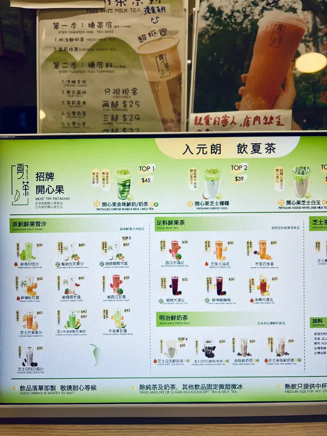 【元朗區】【夏茶】之前講到同莊敬哥喺元朗做嘢,就去咗食嘢,食完嘢行陣千色,都好耐冇行過呢頭,懷緬一下。行行吓有啲想飲嘢,記得入商場嗰時見到有間茶飲店排咗勁多人,我哋都好好奇究竟係何方神聖。行咗幾個圈,終於等到佢哋少啲人嗰陣先過去排,再睇吓飲咩先。原來佢哋招牌係開心果飲品,但係我哋都麻麻哋想飲。店員好有心機咁推薦佢哋嘅「原創鮮果雪沙」畀我哋,好啦,就試吓。莊敬哥試 $42 嘅「龍眼椰椰甘露」,佢就大讚杯嘢飲好濃味,椰汁味勁濃香,但亦都冇冚晒龍眼嘅清甜,兩個味都出到而又夠甜喎。而我就試 $38 嘅「鮮香印雪沙」,仲加 $2 要埋「芝士」。初初我以為會好似沙冰咁,點知係好飲過沙冰好多,個口感好舒服,面頭嘅芝士亦都非常香濃,同提子味都好夾。而香印提子嘅清香都發揮得好好,成杯嘢非常生津解渴,唔怪得知呢間嘢長期排隊。。。(地址:元朗教育路1號元朗千色匯地下47號舖)#1amfoodie #foodie #hkfoodie #thatfoodiething #hkfood #food #instafood #yummy #foodlover #delicious #foodies #tasty #globaleats #tastyfood #foodpics #followforfollowback #love #eat #1am元朗區 #元朗 #朗屏 #夏茶 #康樂路 #大棠路 #龍眼椰椰甘露 #鮮香印雪沙 #手搖杯 #1am1881 #1ambackup…查看更多