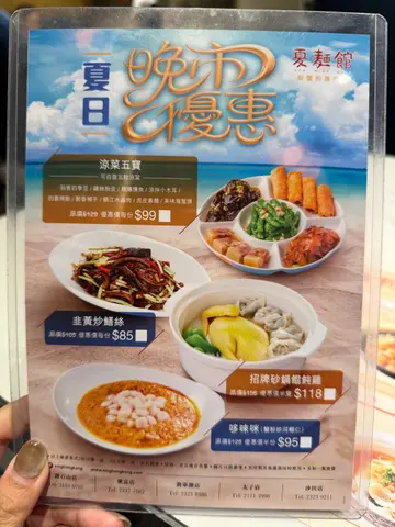 位於寶琳新都城中心既上海菜館-夏麵館,提供多款上海特色菜,價錢親民。餐廳更推出晚市感謝祭,平日每日都有指定優惠😆適逢星期五,指定甜品每款$20,幾抵食👐🏻🍴雞絲粉皮 ($58)雞絲份量幾多,粉皮滑溜👅配上爽脆嘅青瓜🥒同香濃嘅麻醬,幾開胃👍🏻🍴上海春卷 ($30)春卷外皮炸到金黃,包住多款蔬菜絲🥕爽脆香口👄🍴一口蟹粉鍋貼 ($68)鍋貼用鐵板上,夠哂熱辣辣🔥內餡鮮嫩,配埋醋,蟹粉味道更突出🦀🍴排骨菜飯 ($62)排骨酥脆嫩,夠入味👅菜飯軟糯,吸收晒菜嘅精華,有少少油香,唔錯😋🍴豆沙鍋餅 ($20)窩餅外皮香脆,夾住香滑嘅豆沙餡,甜而不膩😎🍴高力豆沙 ($20)外層鬆軟,蛋味濃郁🥚豆沙甜度適中👌🏻…查看更多