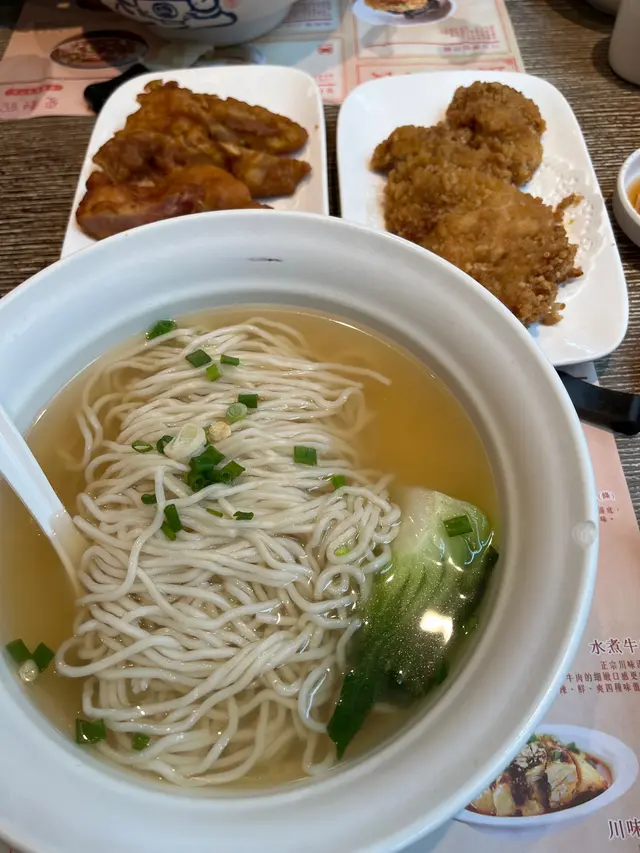 我記得上次我明明話唔想再去食,但諗起天氣凍可以食大大碗頁熱面我地最後又入左去試。衛生方面係冇改善,啲碗碟一樣喺油淋淋。今次叫左兩碗麵一個小食, 我同自己講下次真係諗清楚先好再行入去。嫩雞燴麵一樣咁大碗,但出出面嘅燴麵通常都係好濃嘅湯汁,但呢度因為好大碗所以就變得比較稀。麵質係唔似會面燴麵,有蔬菜有雞粒但唔係嫩雞。總的來說其實都係鮮甜好味。酥炸排骨擔擔麵酥炸排骨好香好脆豬肉好林,但係好大陣鬆肉粉未。湯底唔濃好稀。但其實都好味嘅。素鵝 無食過食素鵝入邊竟然係金菇,但炸得幾好加上醋我覺得係好唔錯。查看更多