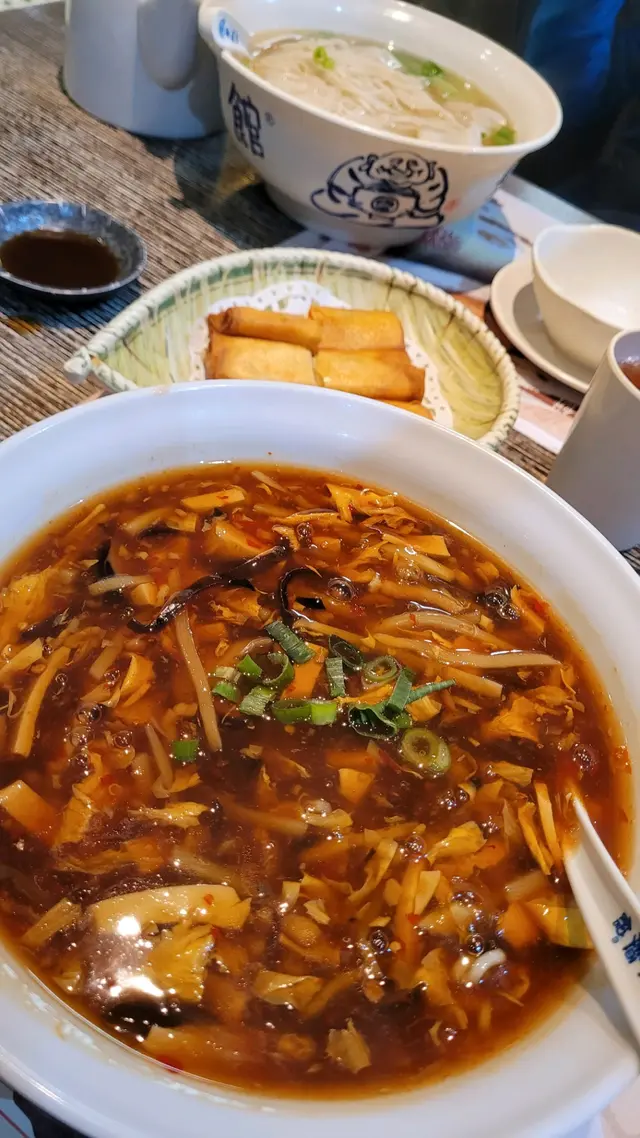 因為肚餓又想食上海野,即使見到副評如潮,都用於一試。入到去見到人影都冇隻,覺得 伏味濃,坐低見啲碗碟勁汙糟,真係驚。即刻睇食評,果然啲負評唔喺浪得虛名,因為我都幾重視食物嘅溫度,所以我同我先生只敢叫湯面。菜肉雲吞麵 大大碗,熱辣辣,雲吞大大粒,上海麵香軟適中,份量多。除咗菜肉雲吞餡了比較淡,其實尚算可以。酸辣湯麵大大碗,熱辣辣,配料足。酸辣度適中,每條麵都可以掛到汁,10分好食。 上海春卷都夠熱,餡料唔夠,但炸到脆卜卜, 配上佢地嘅醋,好香好好食。雖然食物質素可以接受,但除左碗碟污糟之外,仲有昆蟲飛來飛去,所以應該唔會再去。查看更多