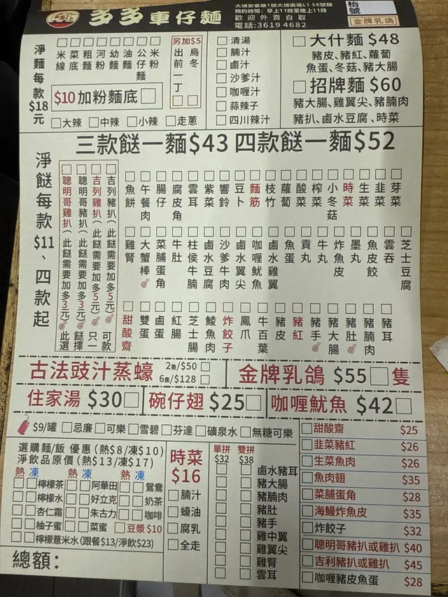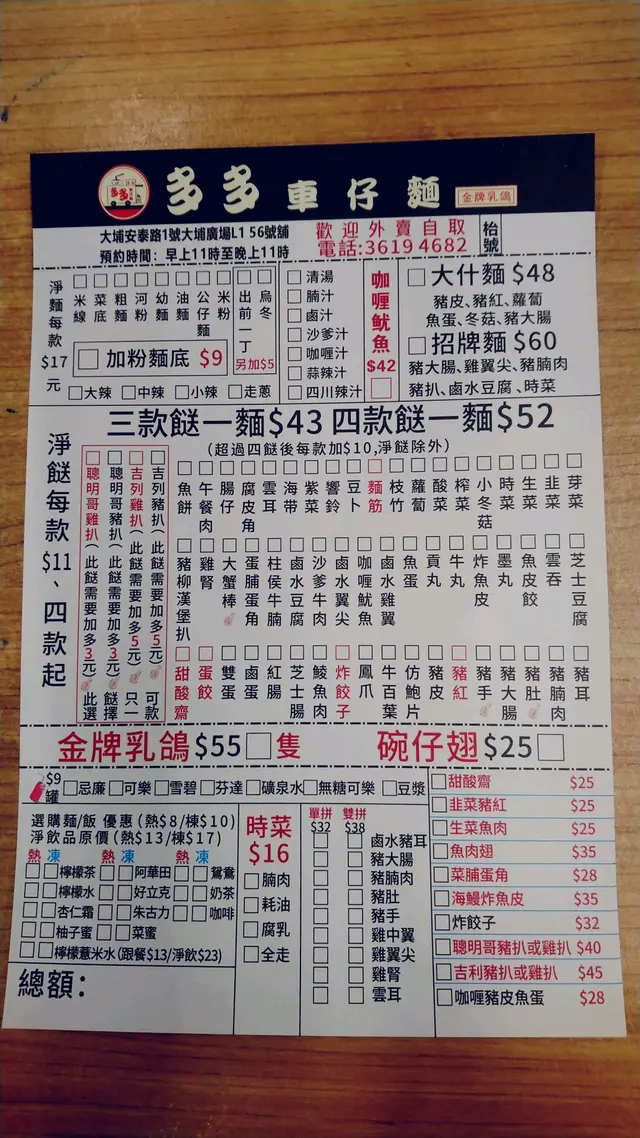 多多車仔麵 (大埔) 網址: https://s.openrice.com/QrbS0tdi900 地址: 香港大埔安泰路1號大埔廣場地下56號舖 電話: +852 36194682