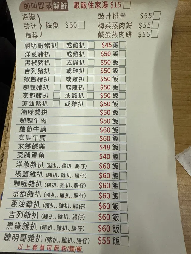 今日黎到大埔試下好出名既聰明哥豬扒,7點左右去到,餐廳都好滿下,但兩個人都搵到位😊車仔麵既餸都有好多款可以揀,一黎就當然係剔左個聰明哥豬扒先啦,同埋都想嗌埋吉列豬扒比較下聰明哥豬扒睇落已經好吸引,食落真係好好食,醃得好入味!真係主打!至於吉列豬扒比想像中深色,可能小小炸過龍,但食落都香口既車仔面揀左咖哩汁,正常發揮,豬腸夠哂肥美香小食揀左呢兩款,甜酸齋浸埋d湯一定好食啦,菜莆蛋角唔係到到都食到,都整得好香口,軟綿綿好有蛋香小店來講呢間餐廳員工態度都好好,大家真係要多啲幫襯☺️