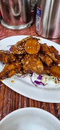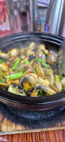元朗有好多大排檔,但我比呢間嘅招牌燒雞吸引咗!! 一定要黎食!夏天食大排檔有風味之餘最緊要有冷氣,呢到有2層室內,都有冷氣,可以食得舒舒服服🥢炭火燒雞基本上每枱都必點! 建議一入座就叫左先,因為即叫即燒,要等30分鐘~原隻上枱,好有睇頭!! 一上枱已經聞到陣陣燒烤香味,雞皮燒到金黃色,仲有啲微微焦痕,帶少少油光,賣相超有食慾! 啲肉仲係嫩滑多汁,冇焗到乾晒。雞皮脆卜卜,咬落去先有炭香,跟住啲雞肉鮮味就爆晒出嚟,肉汁滲晒出嚟,每咬一啖都好滿足,再點啲淮鹽,味道即刻再提升🥢西蘭花炒鮮魷西蘭花炒得啱啱好,保持到爽脆同水份,咬落去有啲“咔嚓”聲。鮮魷片厚薄適中,唔會嚡口,彈牙又帶鮮味。成碟菜用咗啲蒜同清雞湯快炒,味道唔會太重,啱啱好突出晒材料本身嘅清甜同鮮味🥢啫啫魚頭煲成煲熱辣辣,香氣撲鼻,啲魚頭件件煎到金黃色,外皮微微焦香,仲滲住啲惹味醬汁,煲底鋪滿晒蒜頭、豆豉、乾蔥、辣椒粒同埋蔥段,全部炒到香氣十足,魚頭皮脆肉滑,魚肉厚實又多膠質,食落啖啖黏嘴,送白飯一流…查看更多