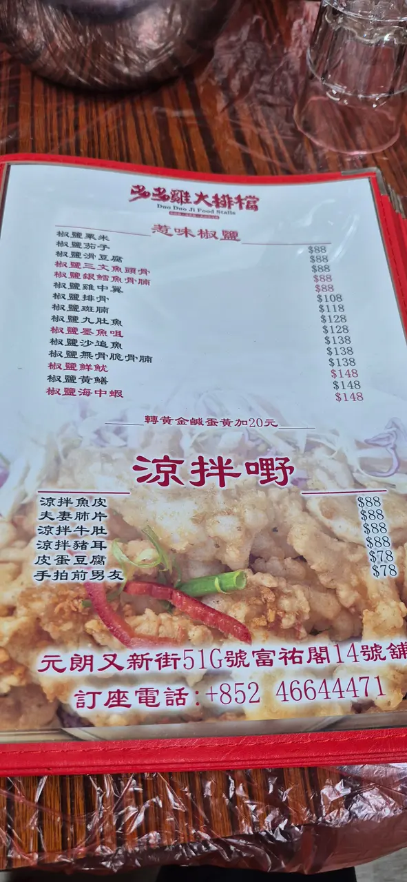 多多雞大排檔 (元朗) 網址: https://s.openrice.com/QrbS00FaC00 地址: 香港元朗又新街37-51號富祐閣地下14號舖 電話: +852 46644471