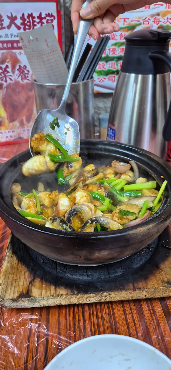 元朗有好多大排檔,但我比呢間嘅招牌燒雞吸引咗!! 一定要黎食!夏天食大排檔有風味之餘最緊要有冷氣,呢到有2層室內,都有冷氣,可以食得舒舒服服🥢炭火燒雞基本上每枱都必點! 建議一入座就叫左先,因為即叫即燒,要等30分鐘~原隻上枱,好有睇頭!! 一上枱已經聞到陣陣燒烤香味,雞皮燒到金黃色,仲有啲微微焦痕,帶少少油光,賣相超有食慾! 啲肉仲係嫩滑多汁,冇焗到乾晒。雞皮脆卜卜,咬落去先有炭香,跟住啲雞肉鮮味就爆晒出嚟,肉汁滲晒出嚟,每咬一啖都好滿足,再點啲淮鹽,味道即刻再提升🥢西蘭花炒鮮魷西蘭花炒得啱啱好,保持到爽脆同水份,咬落去有啲“咔嚓”聲。鮮魷片厚薄適中,唔會嚡口,彈牙又帶鮮味。成碟菜用咗啲蒜同清雞湯快炒,味道唔會太重,啱啱好突出晒材料本身嘅清甜同鮮味🥢啫啫魚頭煲成煲熱辣辣,香氣撲鼻,啲魚頭件件煎到金黃色,外皮微微焦香,仲滲住啲惹味醬汁,煲底鋪滿晒蒜頭、豆豉、乾蔥、辣椒粒同埋蔥段,全部炒到香氣十足,魚頭皮脆肉滑,魚肉厚實又多膠質,食落啖啖黏嘴,送白飯一流…查看更多