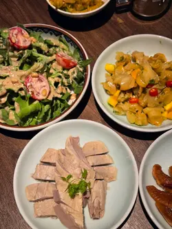 為慶祝倆寶貝生日,這次仍然選在位於K11 Musea的的「夜上海」,融合了維港風情與摩登氛圍的餐廳,為夜晚揭開完美序幕~🥂🍽️ 前菜三絕❶ 麻醬冰菜~清爽開胃,冰菜脆嫩裹著香濃麻醬,層次分明~😍😋🤤👍❷ 脆鱔~經典本幫冷盤,酥脆甘香~👍😍❸ 酒槽豬手~酒香醇厚,豬腳凍Q彈不膩,每一口都是江南底蘊~😋🤤😍🤤🔥 主食盛宴❶ 嫩蔥焗小黃魚~蔥香撲鼻,魚肉細嫩如蒜瓣,簡單調味凸顯鮮味~😋🤤😍👍❷ 孜然羊肋骨~西北風情融入滬菜,孜然香氣濃鬱,羊肉軟嫩無羶氣~👍❸ 脆皮炸雞~雞皮薄脆如紙,肉質鎖滿汁水,沾椒鹽更顯風味~😋🤤😍👍❹ 濃雞湯單檔~湯色金黃醇厚,百葉吸飽雞湯鮮甜,暖心暖胃~👍😍❺ 蔥香鮑魚撈麵~鮑魚彈牙,蔥油香滲入麵條,滬式撈麵的奢華升級~😋🤤😍❻ 杞子薑絲浸通菜苗~清新平衡,枸杞甜與雞湯底溫柔包裹嫩菜苗~👍❼ 上海生煎包+小籠包~生煎底脆肉鮮爆汁、小籠包皮薄湯濃,經典無可挑剔~😋🤤😍👍🍹 飲品點睛❶ 熱豆漿~醇厚古味;❷ 甘蔗汁~清甜解膩;❸ 熱薏米水~溫潤養生,搭配重口味菜色恰到好處。🍰 甜蜜終章❶ 蛋白杏仁茶~杏仁香滑順口,蛋白絮如雲朵~😍❷ 紅棗糕~糯而不黏,棗香天然甘甜~😍🎂 生日蛋糕❸ 芒果乳酪慕斯+茉莉茶巧克力蛋糕~餐廳自家製蛋糕~果香清新與茶韻深邃的雙重驚喜,為慶典畫下甜美句點~🥳😍👍📍 **餐廳資訊**👨🍳:夜上海🏠:尖沙嘴K11 Musea 7樓…查看更多