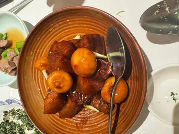今晚與幾位朋友來到夜上海享用晚餐,之前有人推薦這裡的上海菜不錯,所以特意前來試試。我們點了以下幾道菜:1. 醉雞 醉雞份量適中,大約有¼隻雞,酒香濃郁,口感尚算不錯,但整體表現仍未能算是十分突出。2. 賽螃蟹 這道菜令人稍感失望,水分較多,蟹肉的份量似乎偏少,味道未如預期。3. 片皮鴨雙食 本來喜歡片皮鴨配嫩肉,但這道菜並未包含嫩肉部分,不過鴨皮非常脆,口感依然不俗。4. 瑤柱蛋白炒飯 炒飯非常出色,飯粒乾爽分明,配料豐富,是當晚的亮點之一,值得推薦。5. 小籠包 小籠包湯汁豐盈,肉餡選料講究,肥瘦比例適中,整體口感佳,誠意推薦。整體來說,餐廳用餐體驗良好,環境略為嘈雜,但服務細心快捷。…查看更多