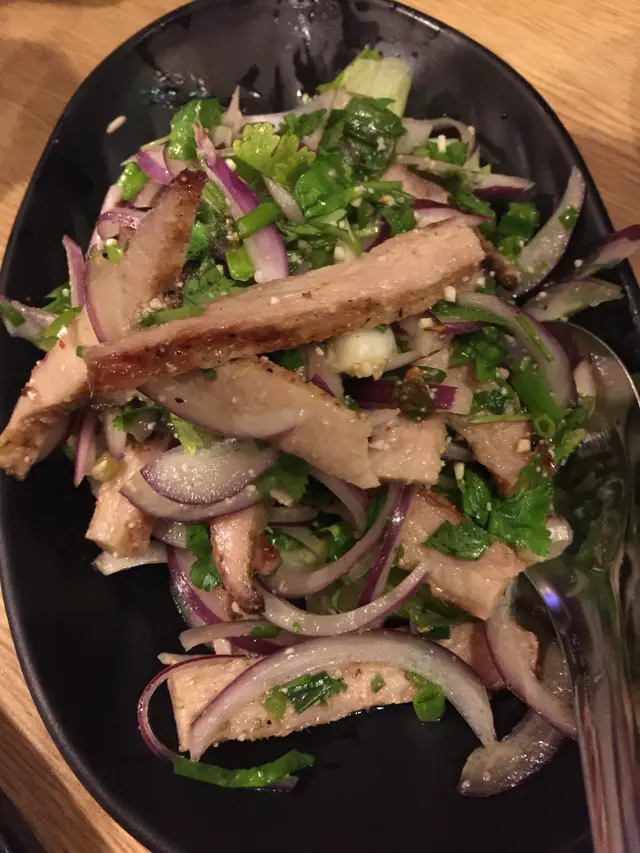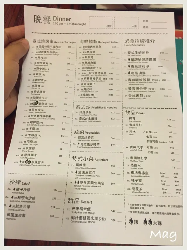 朋友介紹來这间小小的泰國菜饭店,本來期望不高,估不到原來相當不錯,可以再來。先说这里的裝修,看得出花了不少錢,最贊的是洗手間,十分乾淨,洗手盤也很有特色。閒話不多说了,最重要是食物質素如何,店員哥哥介紹了这里几个必'食菜式,我們全都要了,果然没有失望。首先是:)柚子沙律,柚子非常新鮮,配料才出色,花生完全冇益味,他們说是自己炒的,椰絲也是自己炒的,生菜全是BB菜,最甜的部分。再來是这里的招牌:)楊氏烏头,果然一点泥味也没有,而且燒得刚刚好,不會太熟太鞋,还有黄油在內,非常美味。其他燒烤也很好吃,:)燒自家打的墨魚棒,墨魚相當弹牙,讓在內的甘蔗棒仍水分十足,而且很是甜。:)燒壕相當清甜,因為这里是用新鮮生壕烧,外面較少这样造,所以燒出來还帶有海水味,一定要试。还有其他燒烤也十分好吃:)牛肩肉,羊架,北海道带子,茄子等等,不多说了。还有:)青咖哩軟蟹,咖哩味道十分適中,不会太辣,带少少耶计甜味,十分适合我。:)招牌炒飯雖然沒什麼特別,但廚師炒得煱气十足,每粒飯也分开的,比起茶记的炒飯好食得多。最可惜是吃不到黄咖哩炒蟹和芒果糯米飯,下次來必'定先預订。这里除了食物不错,服務也十分贊,那個店員哥哥不知是否老闆,十分有礼貌,有耐性地向我們介紹食物,而且看來对红酒有一定的研究,給了我們不少红酒知識,最值得一贊是他给我們红酒杯前,可能見不太乾淨,我見到他每只清潔过后才给我們,服務态度一流。但这里有點不好的地方,就是出菜时间,我們还好,隔離的一对情侶便十分不滿,他們说等了40分鐘只食过一串立腸,可能真是太多客人的关係,希望可以改善一下。查看更多