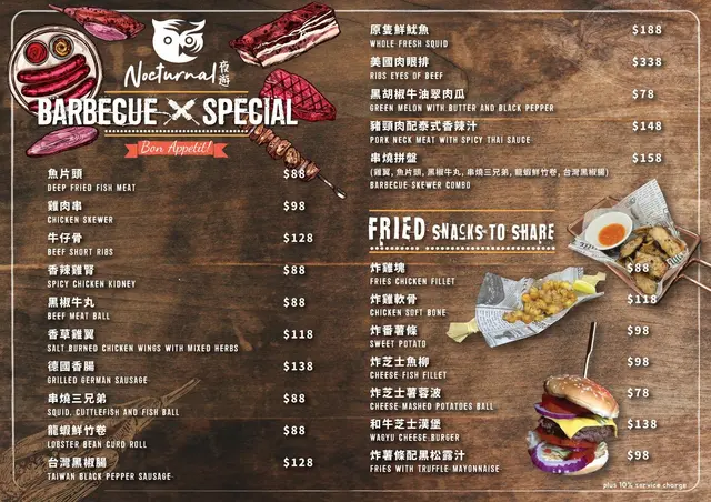 夜遊 (尖沙咀) 網址: https://s.openrice.com/QrbS0fb0A00 地址: 香港尖沙咀金巴利道40號MW Plaza 3-5樓 電話: +852 28863391