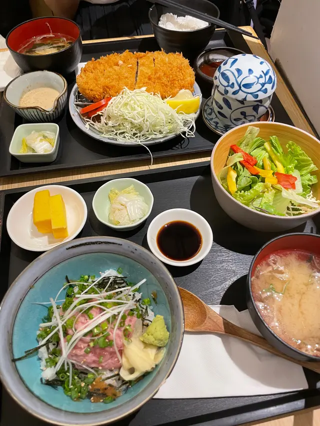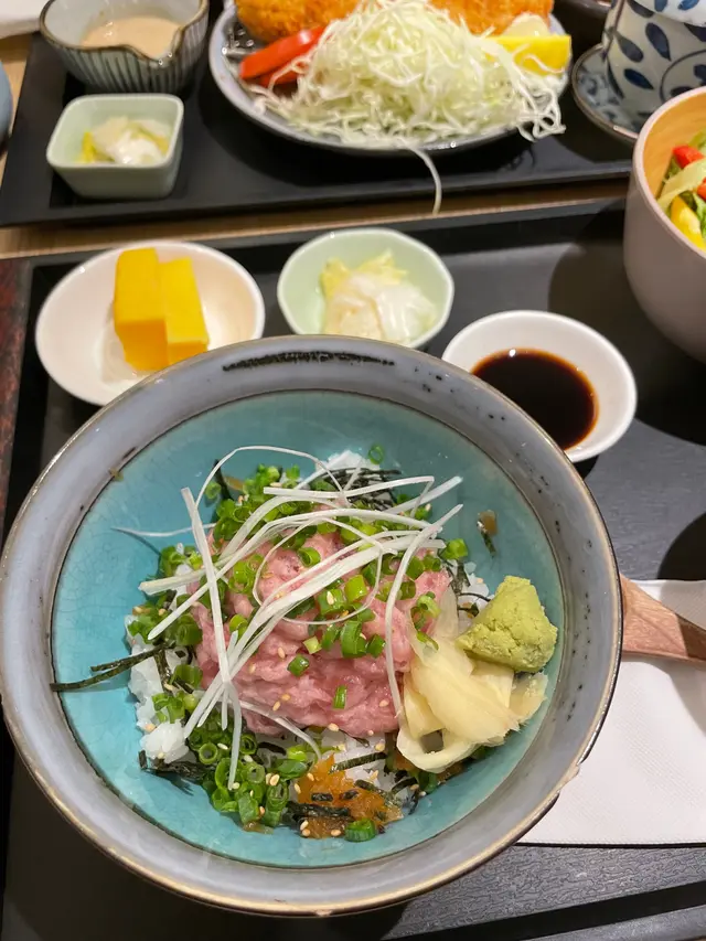 話說前幾日去開長沙灣睇戲,就搵下附近有咩野食,就search到呢間小店,見到都幾多人講就諗住去試下。夜晚7:00幾去到已經好多人係到等緊不過我諗好野係值得等待既~~等左差唔多半個鐘,終於入到去😋😋兩個人叫左一個吉列豬扒定食($108)、蔥粒吞拿魚腩丼($103)同埋叫左碟炸天婦羅($42)吉列豬扒都幾大塊,不過就好似老左d,d肉有少少硬同埋碟沙律都麻麻地好食,好似hea整咁🥲咁算啦,試下我叫果個吞拿魚啦,呢個都算ok,不過份量太少,女仔都還好既,男仔應該會唔夠飽🤣🤣最後炸天婦羅就同平時食果d差唔多啦,不過不失😂😂經過都可以去下既🤡唔太貴~~查看更多