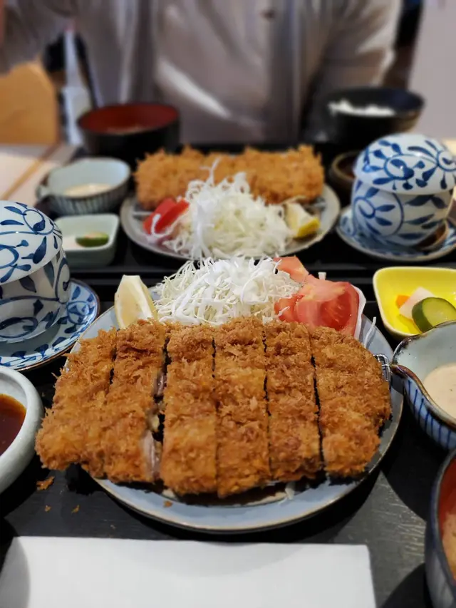 間中就會想食既日式吉豬定食, 不過要有心理準備多數都都要等位 & 要等齊人先可以入座 ( ๑´•ω•)۶ 每次都必定點人氣之選吉烈豬扒定食~ 係會賣晒ga ~ ----* 🍖吉烈豬扒定食 ⭐️(10/10)茶碗蒸, 吉烈豬扒, 前菜, 味增湯, 無限添加椰菜絲 & 珍珠米飯 🍚熱辣辣既厚肉吉烈豬扒外層炸到金黃酥脆, 咬開內裏肉嫩且有啖啖肉汁 (๑•̀ㅁ•́๑)✧︎超級juicy !! 個人鐘意唧d檸檬汁減低油膩感, 再沾上燒汁/ 芝麻醬 一口酸味味帶有咸香既燒汁 一口又換回清新既檸檬口味 滿足晒味覺需要 🥰茶碗蒸非常滑溜, 有淡淡高湯鮮味亦有蟹柳 冬菇 枝豆 作配料 即使係定食中既配角 都非常出色呀🥚 另外我地有點過南蠻炸雞 🍗一樣皮脆肉嫩, 炸物整得非常出色既小店💕#絕對回頭系列查看更多