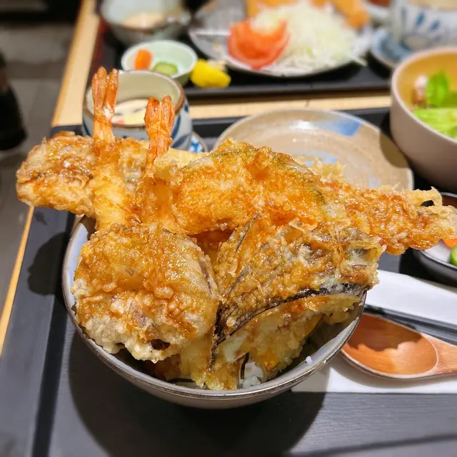話說每次搵食路過,都見到呢間食店門口都好多人等,於是今晚就會一會佢🤤 ❤️‍🔥 吉列豬扒定食 $108呢個可以話係招牌菜,周圍都見有人order!吉列豬扒大大份🤩 而且係。厚。切。 。唔似平時好多都炸粉漿勁多,但裡面豬扒勁薄😖 豬扒炸完唔會乾,仲保持到有肉汁軟腍,夾埋椰菜絲沙律食,感覺唔會太肥膩。配白飯、茶碗蒸,仲有麵豉湯。老公都話勁飽肚,讚!❤️‍🔥 天婦羅丼$128呢個真係超豐富!完全冇諗過咁大份!一樣有味增湯、茶碗蒸… 仲有雜菜沙律🥗 天婦羅以為得平時食開既炸蝦、茄子、南瓜、冬菇啦,點知有成條穴子❣️❣️ 裡面仲隱藏咗隻炸流心蛋,撈飯食一流,唔會乾爭爭🤤 南瓜食落最有驚喜!超甜👍🏻👍🏻👍🏻 所有天婦羅既炸粉漿唔會過厚,配埋淋上去嘅醬汁味道剛剛好❤️呢間真係好大份,食完真係超級飽!差啲忘記講就連茶碗蒸味道亦都唔錯😋 而且唔收加一,真係好抵食,真心大推✨✨下次一定再食,試下南蠻炸雞同鰻魚飯🤤🤤====================推介度:❤️5/5CP值:👍🏻5/5好味指數:👅5/5====================查看更多
