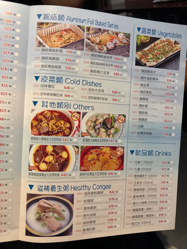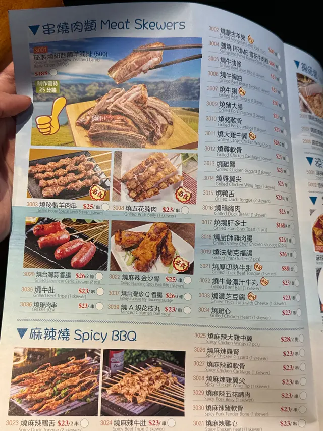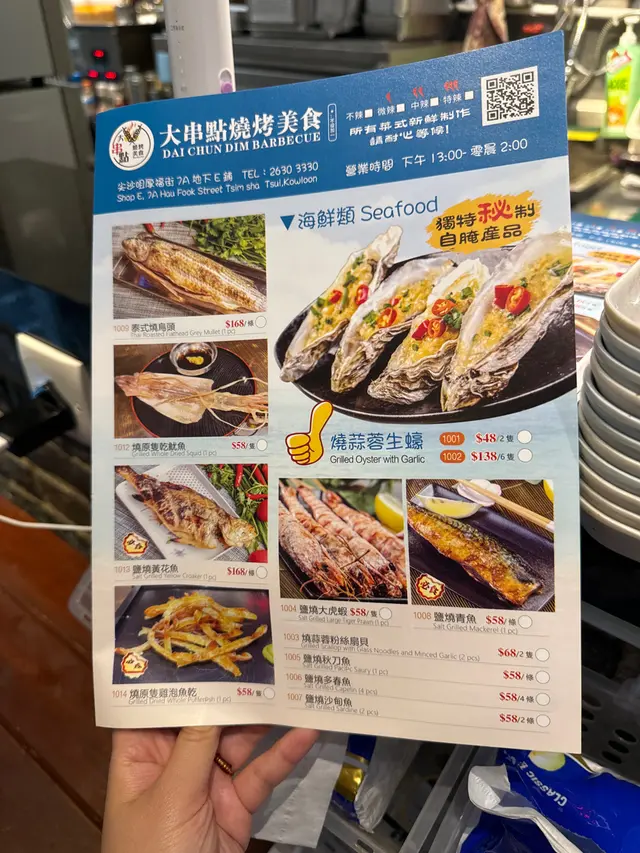 🧔🏻♂️老板態度很好!店面👍幹凈!整潔1️⃣大腸鴨血豆芽粉絲湯好喝!湯頭濃郁,喝了很久還是很燙,適合冬天取暖。大腸處理的很幹凈,肥油留得正合適。豆芽是黃豆芽,略有豆腥味,因人而異喜歡。2️⃣串串好吃!原先以為是烤串,研究了很久發現是煎加烤的(也可能猜錯了)。這次只點了一部分,其中➡️強烈推薦:烤五花腩肉,燒濃芝豆腐,厚燒切熟牛舌,蒜烤生蠔,燒大雞翼無功無過: 燒牛胸油(有一股過於強烈的油炸味,這玩意兒果然還是適合湯火鍋涮)3️⃣錫紙金針菇:味道很足,是我喜歡的配料簡單。像面一樣吸溜吸溜就好。4️⃣燒秋葵:一小盤,份量在香港算挺足的了5️⃣燒多春魚:標準水平…查看更多