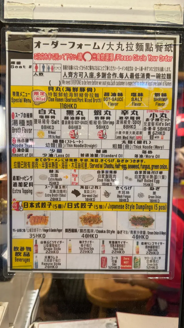 全日本人主理的拉麵店,主打無味精鮮熬湯底,每日售完即止,店面小小,當坐在7米長的實木吧檯上窺見井井有條的廚房,職人默默備菜的畫面況如置身日本橫丁路地的街坊拉麵店————————————————————————✨貝丸✨$118限量供應,五大粒飽滿白蛤,熟度剛剛好,鮮甜無任何腥味,日本蛋也是完美溏心,醬油和蛋香偏淡,幼麵小麥香不重但軟滑掛湯,湯底比起海鮮更多是豚骨風味,骨膠原溶入當中稍稍黏稠但不漿口,淡雅細緻的風味相當不錯,推薦大家中途加入蒜蓉味變,麵條完食後加入昆布醋於剩湯中享用,鮮味提升之餘滋味更清爽✨蝦丸✨$98選擇了太麵,粗身的卷麵更彈牙,亦配合更濃味的蝦湯底,舖面的櫻花蝦不是蝦味來源,相信更多來至蝦的油脂和Tare,主心骨依舊是豚骨,薄切叉燒雖非五花腩但軟嫩富肉香,蝦丸比起蒜蓉加入粗磨黑胡椒更佳,香辛料一瞬的刺激很好地襯托了醇厚的湯底,但不會喧賓奪主令味道混雜。————————————————————————大丸拉麵開業多年,以往人龍不絕到現在扎守鄰里,近年人潮稍退,店舖休息的日子亦越來越多,匠人精神無奈亦要與現實對抗,不論市道或身體狀態亦難以高峰不斷,但不變的是對細節一絲不苟和堅持。大丸未必是拉麵迷眼中的唯一但絕對佔一席位,是值得大家捕捉的扎實味道。…查看更多