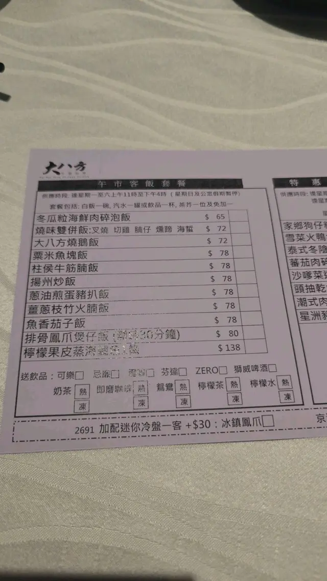 大八方中國料理 (深井) 網址: https://s.openrice.com/QrbS0HIy000 地址: 香港深井青山公路 - 大欖段100號豪景花園商場1樓 電話: +852 24911085
