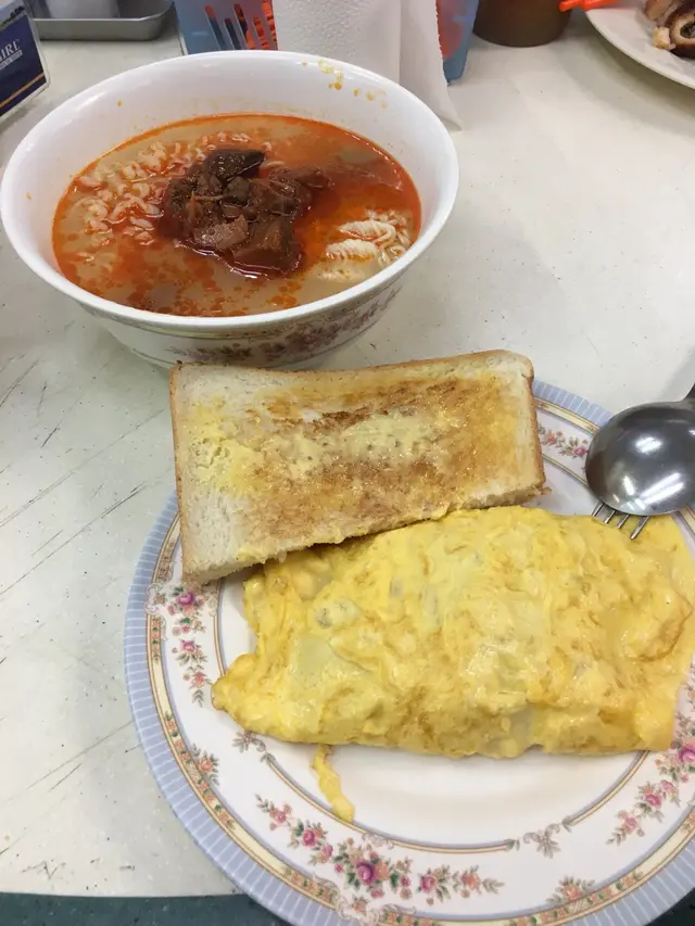 又到鵝頸橋附近,感覺上銅鑼灣灣仔,如果一個人要找些廉價食品,除了這個熟食市場,都不知可以到哪裏。😨「三寶麵」據說是沙嗲牛肉、雪菜肉絲等等,但已經賣光了。🤷🏾‍♀️問一問店員❓有什麼餐是又有麵、又有奄列的,因為雖然時間已經是下午2:30 ,但是對於下午茶那些炸豬扒、炸魚柳、沙律薯條,這些平時在家附近都吃到的東西,不太感到興趣,於是便立志要吃常餐。🤘🏿真可憐,以往明明在深水埗或是其他地區,垂手可得常餐,但現在在大嶼山區上班,上身只有寥寥一兩間餐廳提供,而且貴價而又質素低下。🆘於是點了五香肉丁麵,麵條份量不少,而且保留少許彈力,不算煮到完全軟林或是糊掉;其實五香肉丁麵那些肉丁,非常之老,又乾又鞋,那些乾瘦的豬肉粒,其實不吃也罷🤷🏾‍♀️但肉丁的精髓就是它的汁,因為肉丁的汁化在湯裏,令到這個公仔麵的湯底也充滿香辣味道,辣辣的,非常港式的丁麵辣湯味。一片厚多士以及火腿奄列,多士非常厚,牛油份量不太多,皮也挺厚身,麵包烤得算脆,還是不錯的;火腿奄列就更加大份,大大份的很厚身,內裏的火腿,切成一條條,夾在蛋裏邊,非常之厚身的火腿,雖然雞蛋煎得比較熟,但亦都不算鞋身,保留少許滑蛋的感覺。鴦走也不算太甜,起初只喝到咖啡味道,攪勻之後,乃在於咖啡的味道中和,原來也不算太多,三種味道合併在一起,的確是名副其實的「三樣」。當日同桌剛好搭了三個阿姐,相信是在附近任職售貨員,午餐的時候與同事來這邊吃東西聊聊天,說是非,形成一種非常之熱鬧而八卦的環境。想想東涌動輒一個質素低下的常餐,也要40多元,這兒的常餐吃得大快朵頤都只需$37 ,而且,令一邊廂大排長龍的那間車仔麵,又不便宜又不是好吃,那須排隊去那邊呢?查看更多
