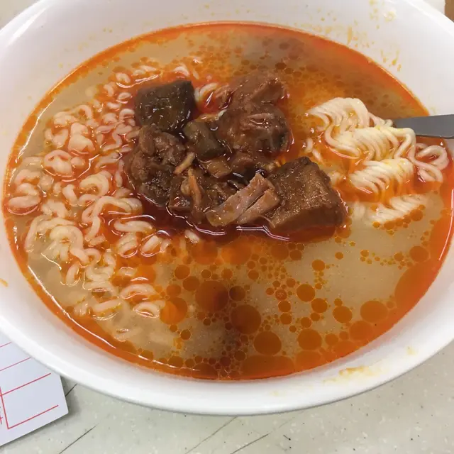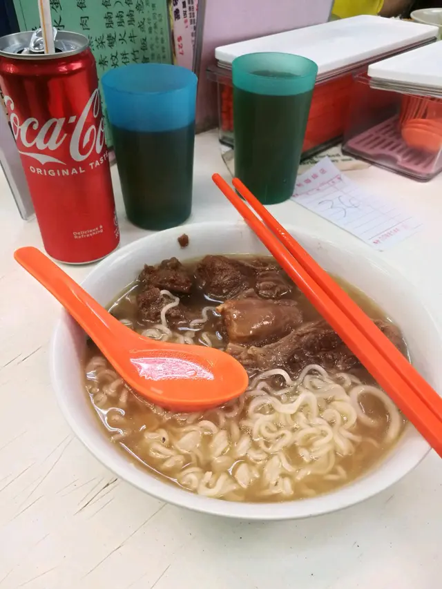 今天於灣仔政府街市上的大利咖啡店食午餐,它出名的咖哩雞,牛腩飯已遠近馳名。但因近期我食得比較肥膩,所以想食麵! 就點了牛腩麵! 加可樂都係加3蚊! 算抵食! 出餐都一如以往,比較快! 首先第一時間送嚟的可樂是高身罐裝,比想像中好。之後牛腩麵嚟到有驚喜,竟然係公仔麵底! 真想知到,佢點知我想食公仔麵! 而且麵的軟硬度適中! 牛腩之中又有有一兩舊牛筋,牛腩和牛筋都又淋又軟熟,重好入味! 真係好好味! 而那公仔麵更索滿腩汁! 十分高水準! 份量也相當足夠。一個滿足的午餐! 查看更多