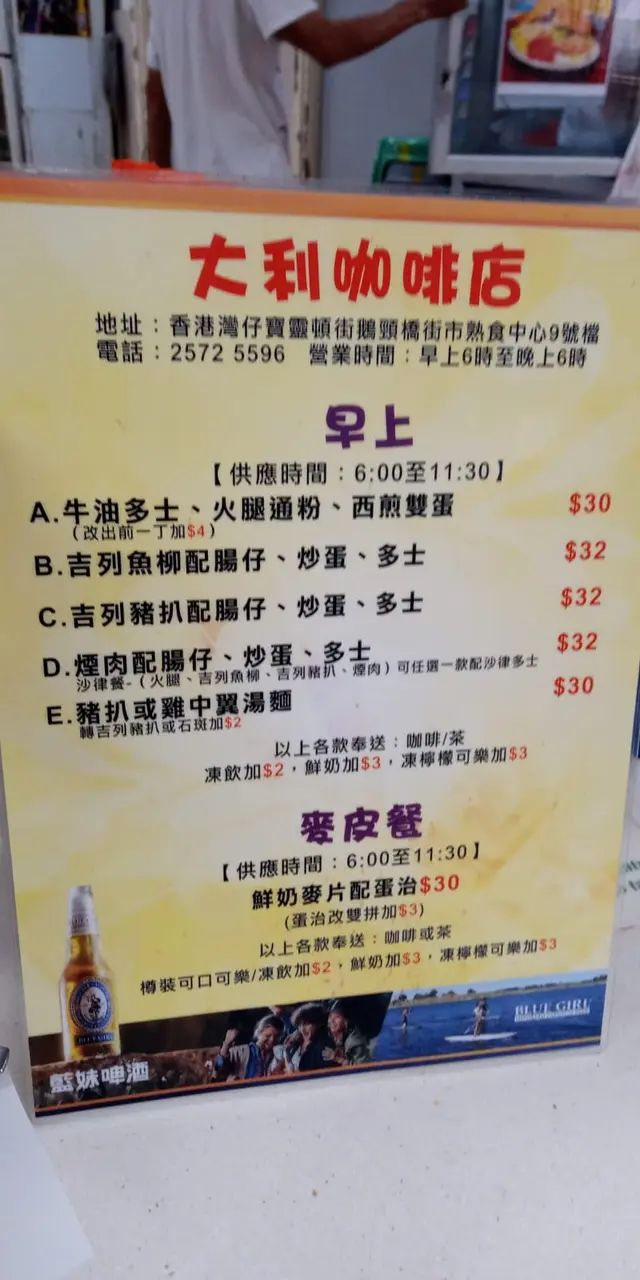 大利是我的至愛。我常常光顧,包括早餐、午餐、下午茶,佢沖泡的港式奶茶最好味。午餐全部即炒,味道很好,很抵食,每次我都需要帶一個盒子,將一半帶走。而下午茶都是三十多元一份。已經光顧了六七年,另外,你也可以叫波仔記車仔麵一齊食,任隨你喜歡。查看更多