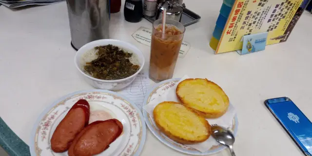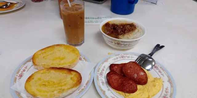 返工前先去吃早餐叫返一個沙嗲牛肉米粉,腸仔炒蛋,仲有多士,加多一杯凍冷茶多士加上奶甜甜地,非常好食,都好脆口沙嗲牛肉米粉味道可以凍奶茶味道不錯,茶味夠,茶香蛋煎得不錯不過蛋味不足,腸仔都好香口查看更多