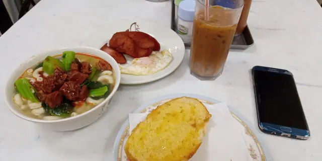 今日去咗鵝頸橋街市入邊食早餐,見到牛雜麵太多人排隊,決定試吓隔離呢一間朝早都好多人食早餐,我嗰台都差唔多爆曬必須介紹嘅,係呢一個炸豬扒set,大大份又抵食!炸豬扒啲粉唔會太厚,咬落去都仲有鬆軟嘅感覺 豬扒都有幾大件,呢個價位嚟講真係非常抵食,豬扒亦都炸得非常香脆 除咗炸豬扒之外仲有多少煎蛋同埋一條腸,如果唔食腸可以轉煎雙蛋,或者加一件火腿 最後我就揀咗凍咖啡,凍咖啡就普通茶餐廳質素,不過不失!有機會會再返嚟幫襯!查看更多